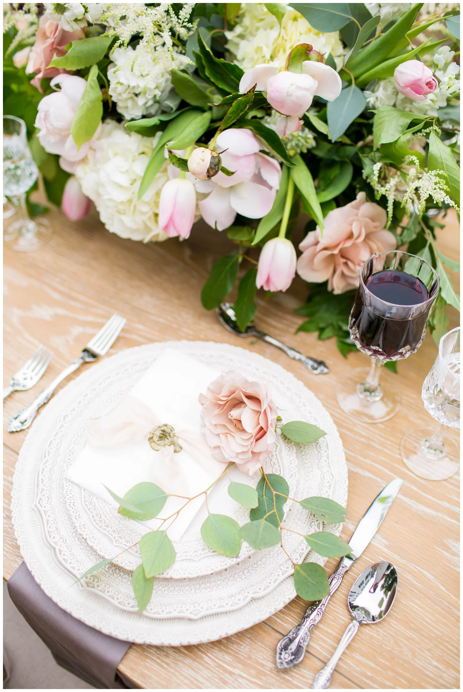 This was by far one of my favorite styled shoots to date! I mean, the color scheme I was working with made styling SO fun! The blushes with soft ivories paired perfectly with the hints of sage and the luscious greenery! True story, I love when I get asked the question, "Do you only style with the color pink?" I always laugh a little at this question! Of course pink is my favorite, but I'll never discriminate when it comes to working with colors!